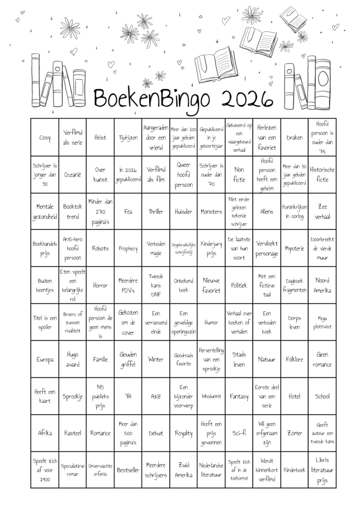 Een bingo is awesome. Een boeken bingo is super awesome! Daarom hun je hier gratis de Boeken Bingo 2026 downloaden door op de afbeelding te klikken.